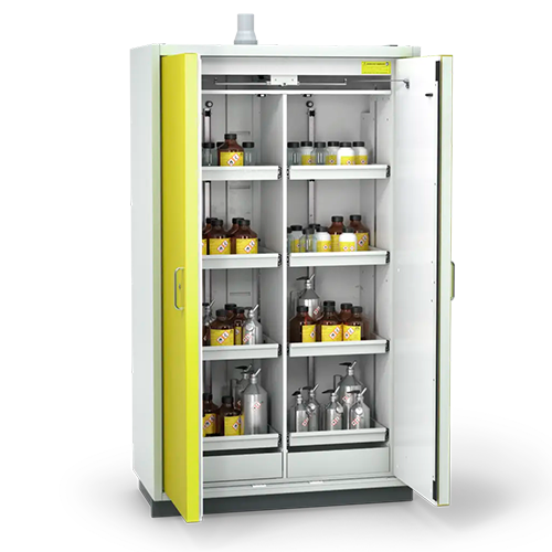 Garantir a segurança ocupacional é uma das tarefas mais importantes da equipe de laboratório. Armazenar solventes inflamáveis em conformidade com as normas é particularmente desafiador. Saiba como armários de segurança modernos, combinados com uma solução de software em rede, garantem maior sustentabilidade em todos os departamentos.
